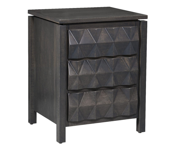 The Jewel Nightstand pairs compact convenience with bold, modern style. Handcrafted from Brown Maple and finished in Storm Grey, it carries the signature wood cut drawer front design and finger pulls of the Jewel Collection.